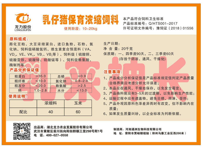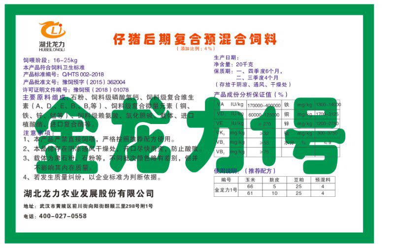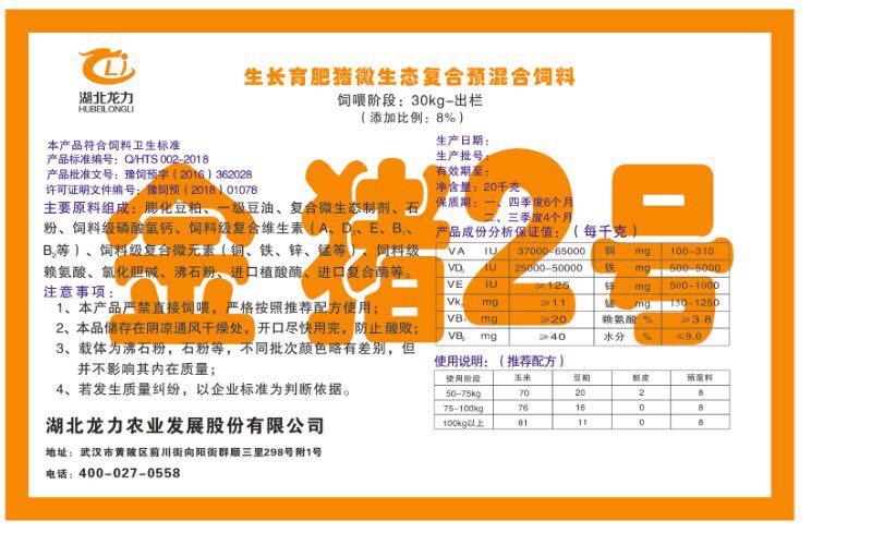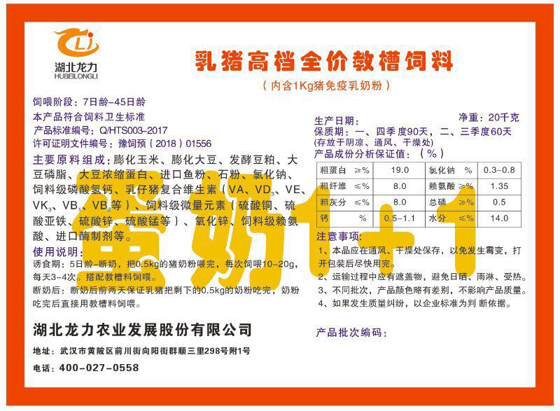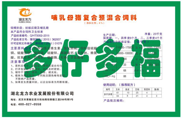 湖北龍力農業發(fā)展股份有限公司坐落于武漢市黃陂區前川街向陽街群順三里298號附1號。公司成立于2014年6月,公司自成立以來把“創(chuàng)全球最大養(yǎng)豬綜合服務”為企業愿景。致力于打造教保料品牌”作為公司發(fā)展的明確目標。公司一直致力于豬營養(yǎng)的研究和開發(fā),積極與國內外高校和科研機構合作,推廣養(yǎng)豬技術、動物營養(yǎng)新概念,向世界農牧企業學習與合作。公司采用國內先進的生產工藝,選擇高精度電子配料秤,高均勻度、無殘留混合機等先進設備....